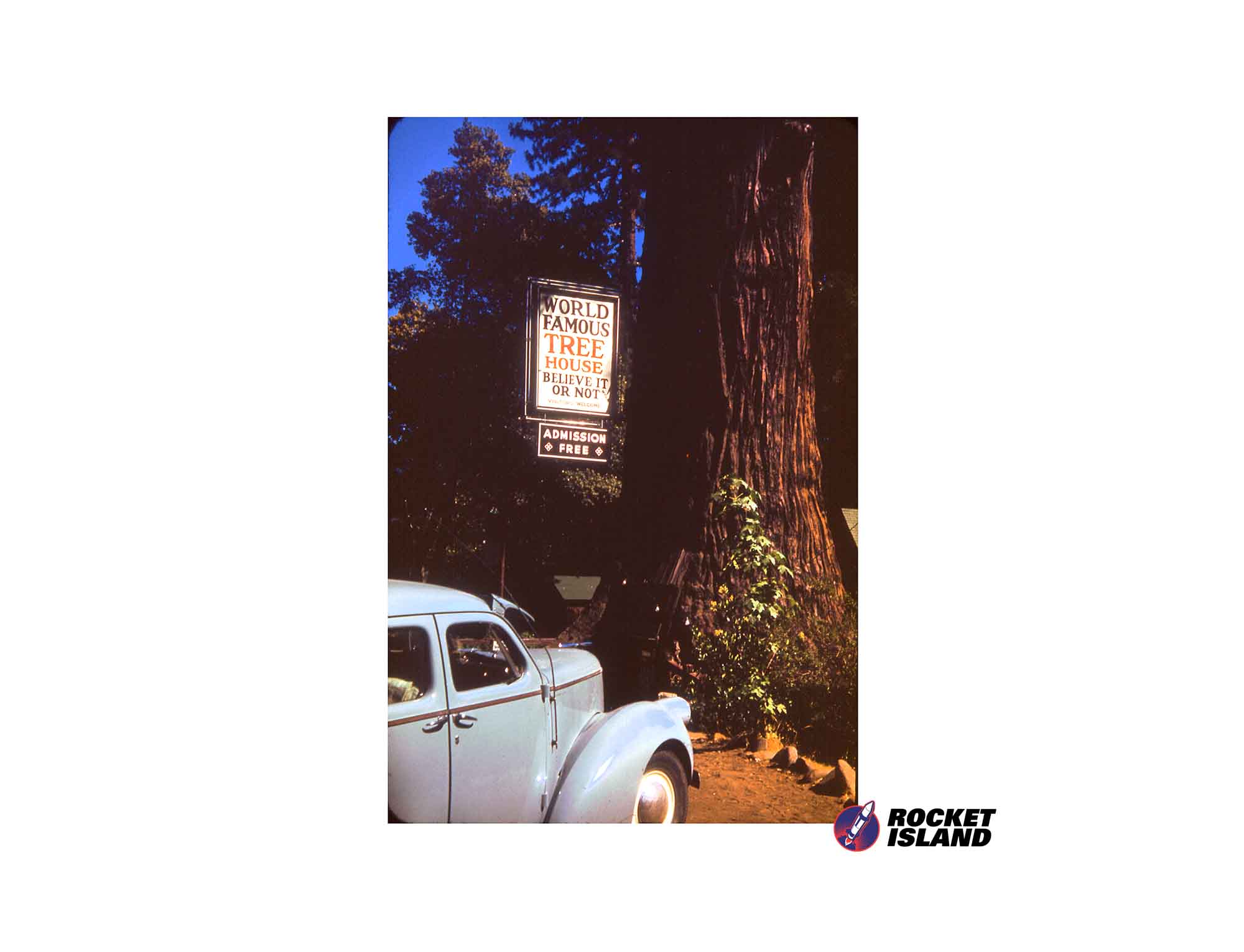 Digital image download of the World Famous Tree House with 1936 Ford Sedan (1940s).